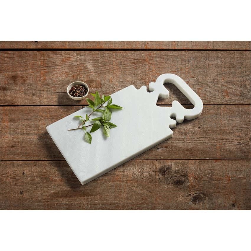 Enhance your kitchen or dining experience with the Marble Board featuring an intricate scroll handle from Mud Pie. This exquisite piece measures 16 1/4" x 8" and is crafted from high-quality marble, making it both durable and stylish.