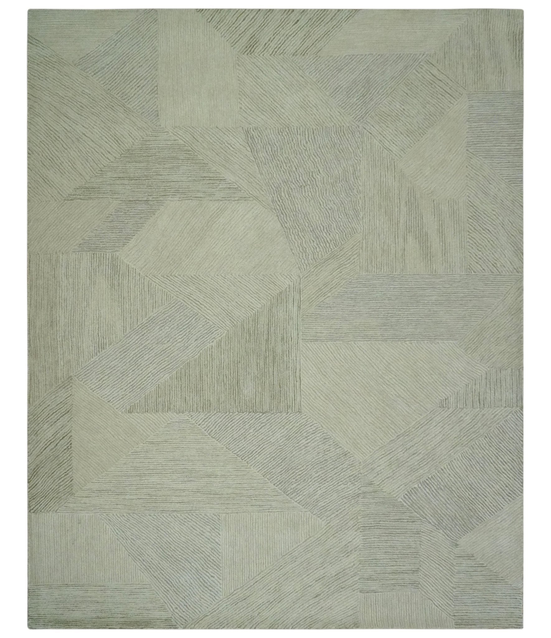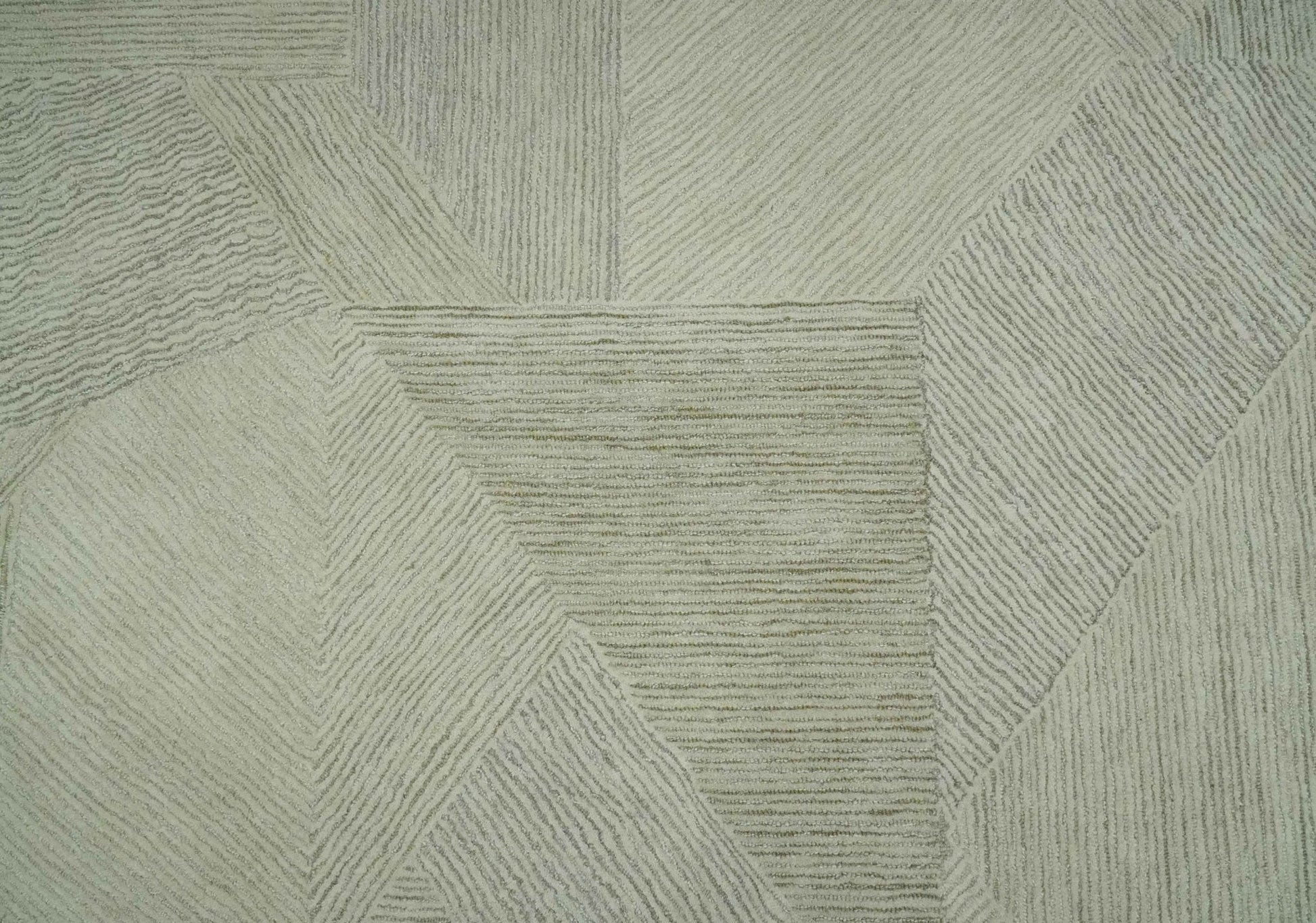 Modern Geometrical Ivory, Gray and Olive Stripes Textured Hand Tufted Custom Made rug