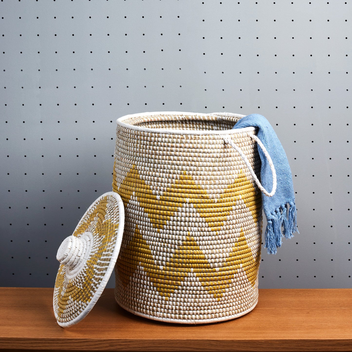 Perfect for organizing your home, this decorative basket is ideal for storing blankets, towels, toys, and more. Its versatile design makes it a smart and stylish addition to any room. The basket comes with a lid and sturdy handles, ensuring ease of use and practicality. Measuring 18'' H X 14'' W X 14'' D, it provides ample storage space while maintaining a compact footprint.