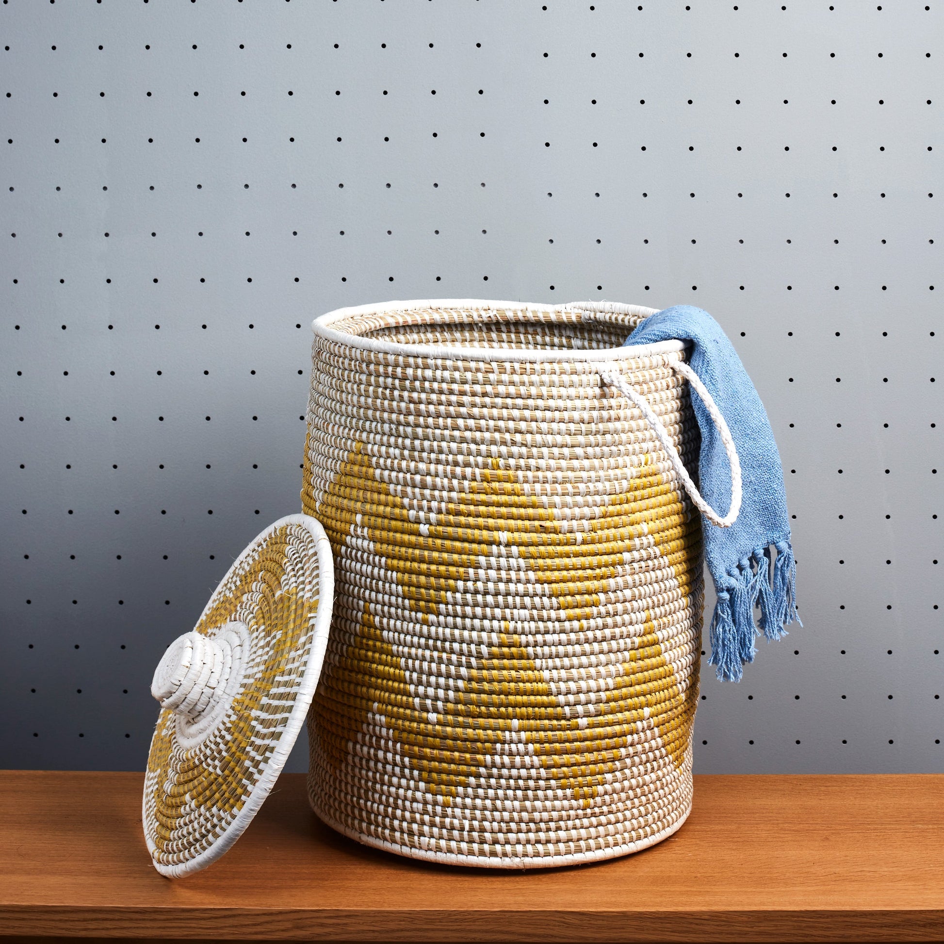 Each basket is unique, with slight variations in color and weave that are a testament to its handmade nature. Embrace the beauty of these differences as they add character and charm to your living space. Whether used in the living room, bedroom, or bathroom, the Moonj Laundry Basket offers a versatile utility storage solution that complements any decor.