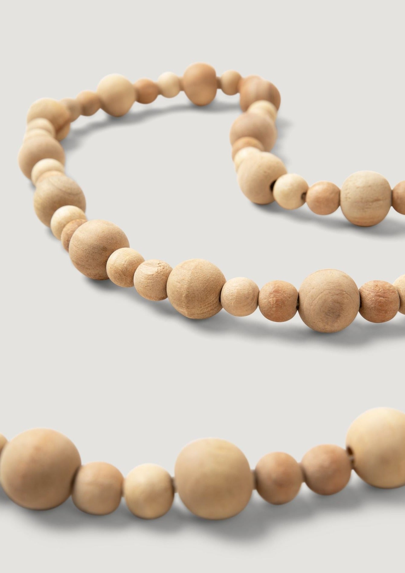 Due to the variations in the natural wood, each bead garland is unique. No two pieces are exactly alike.