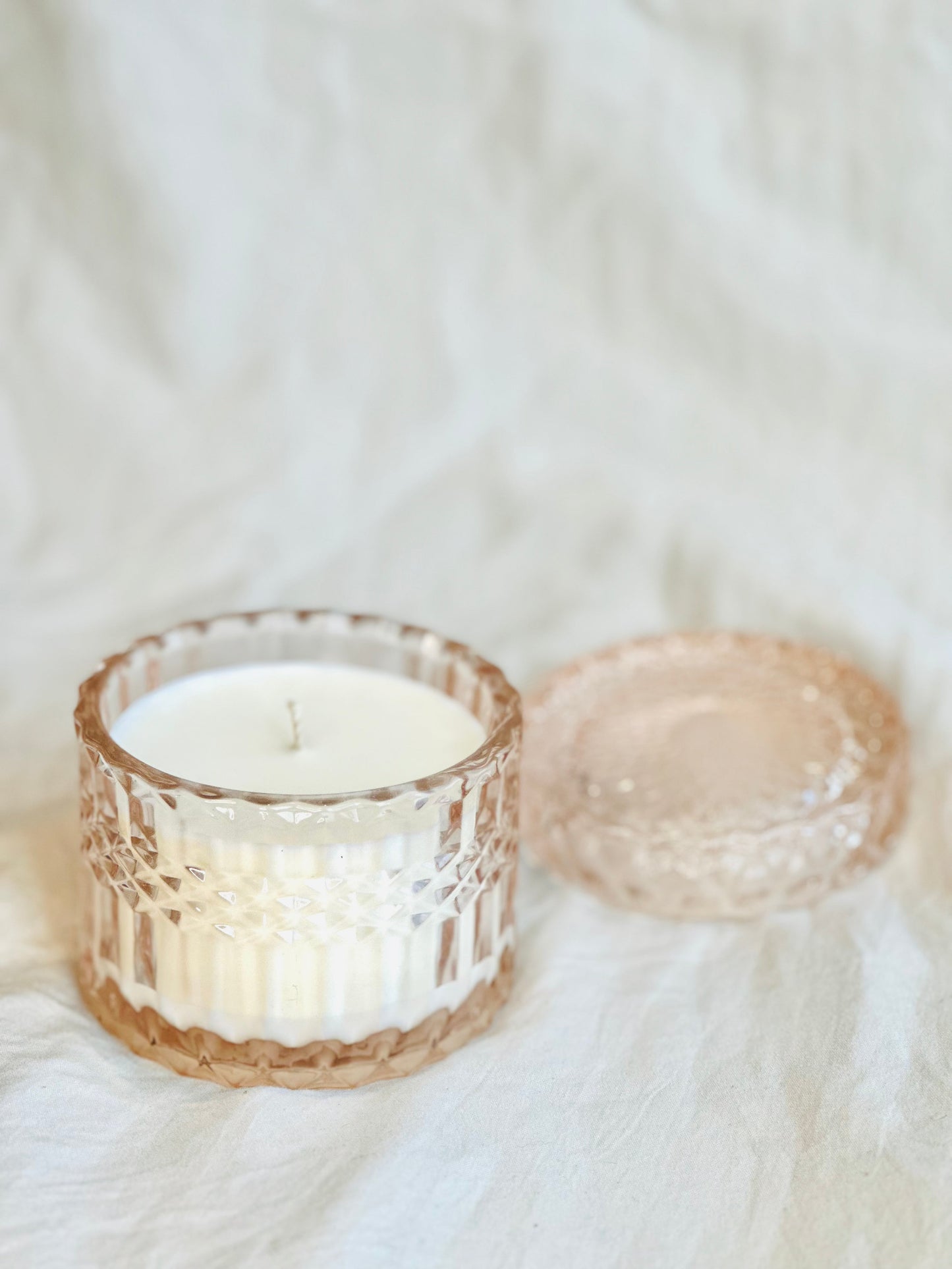 Smells like Beija Flor Cheirosa. A bouquet of Brazilian jasmine, sweet dragonfruit, and sheer vanilla. Hand poured in a blush, vintage-inspired glass vessel.