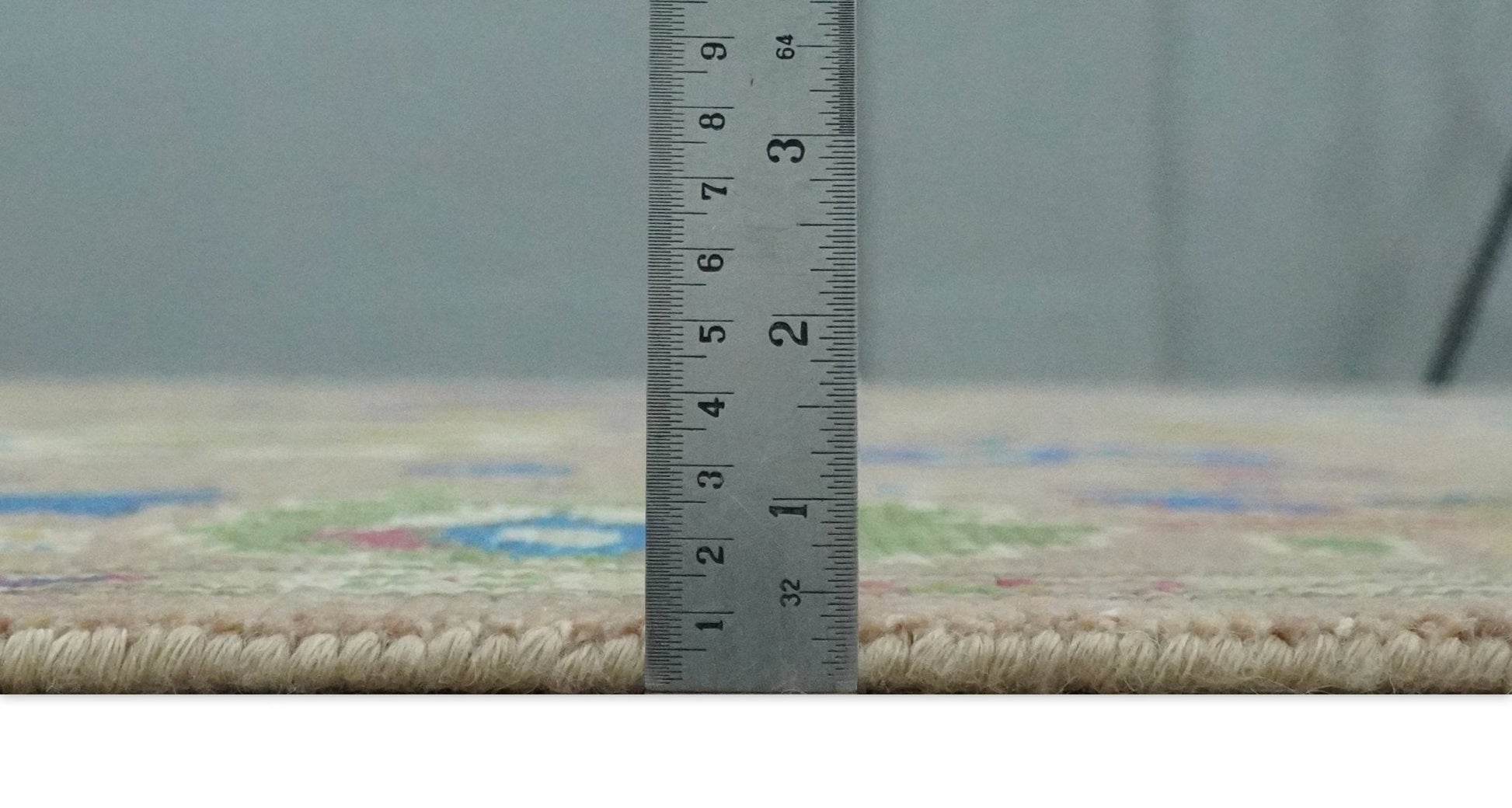 This Vibrant Colorful hand-knotted Oushak wool rug is sure to make a statement in your home. Carefully crafted with blues, peaches, and olives, the traditional design will bring richness and sophistication to any space. The naturally durable wool is crafted with hand-knotting techniques, making this piece an heirloom-quality addition to your home.