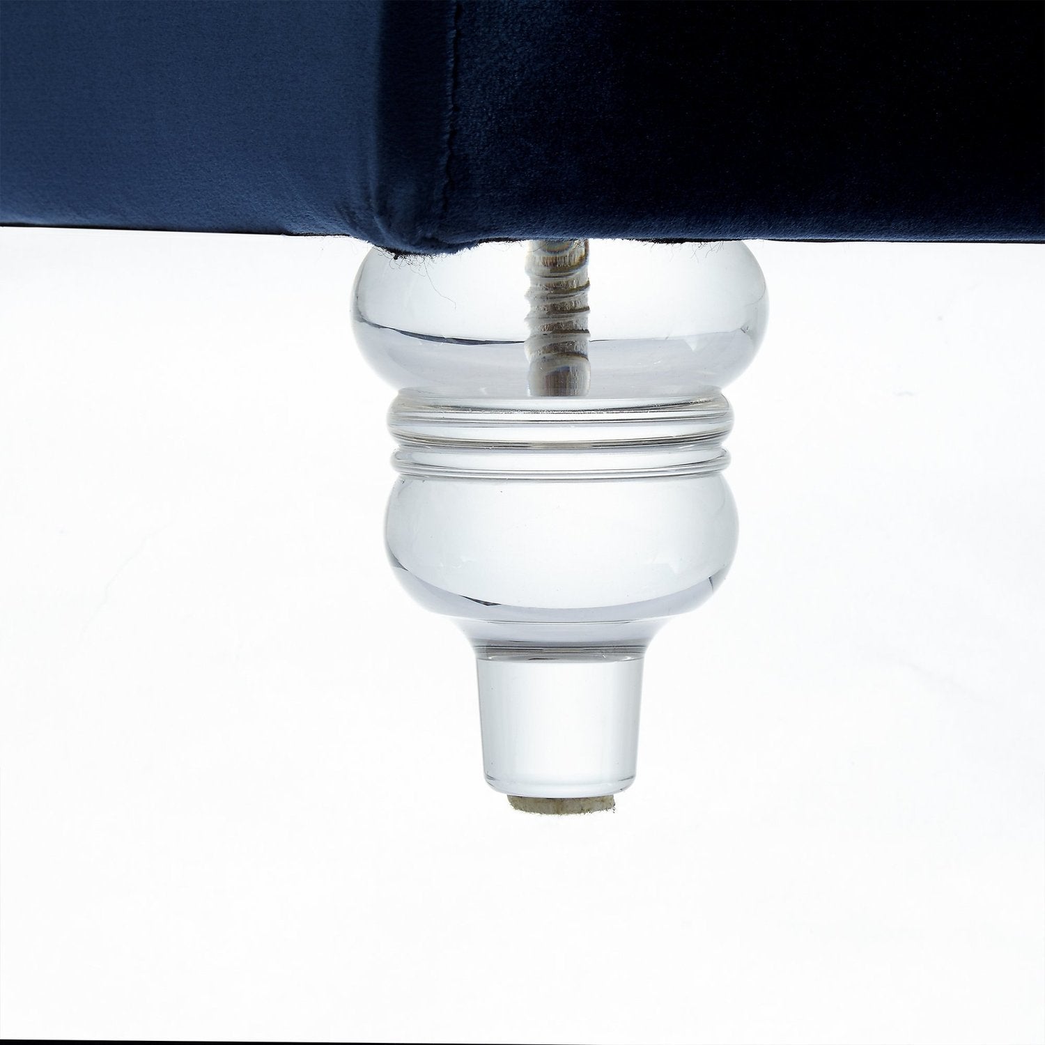 Our velvet oversized square ottoman adds a contemporary yet reserved touch to your living room or home office. Featuring buttery soft velvet with button tufting, the comfort of a high density foam cushioned seat, sturdy acrylic feet. This adorable oversized, low profile, pop of color accent piece is perfect for small kids to curl up on and for kicking up your feet and watching the game without blocking your view.