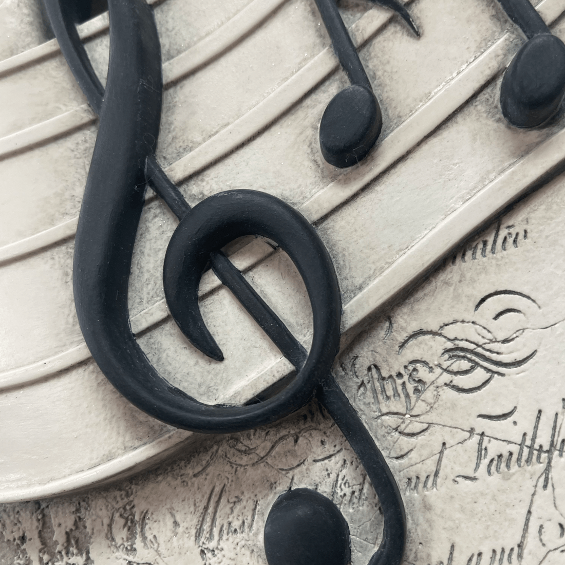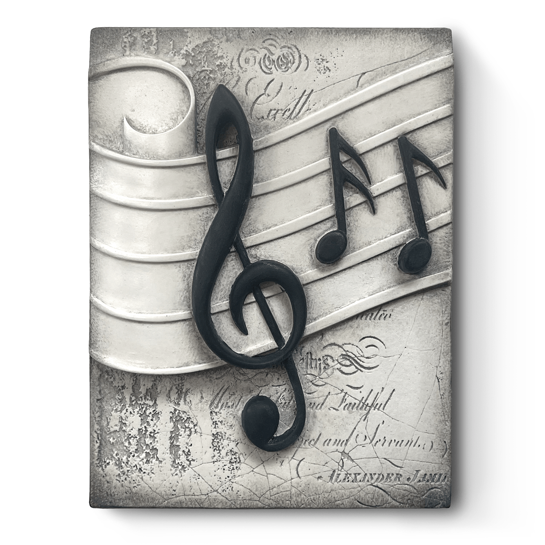 Rhythm by Sid Dickens is a pure and undiluted memory block that evokes cherished memories, fueling spirit and soul. This beautifully crafted piece features a musical theme with a treble clef and notes, perfect for music lovers. The intricate design and high-quality craftsmanship make it a timeless addition to any home decor. Display it on your wall to bring a touch of elegance and nostalgia to your space.
