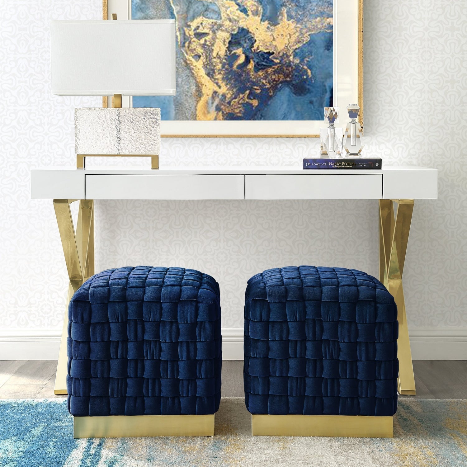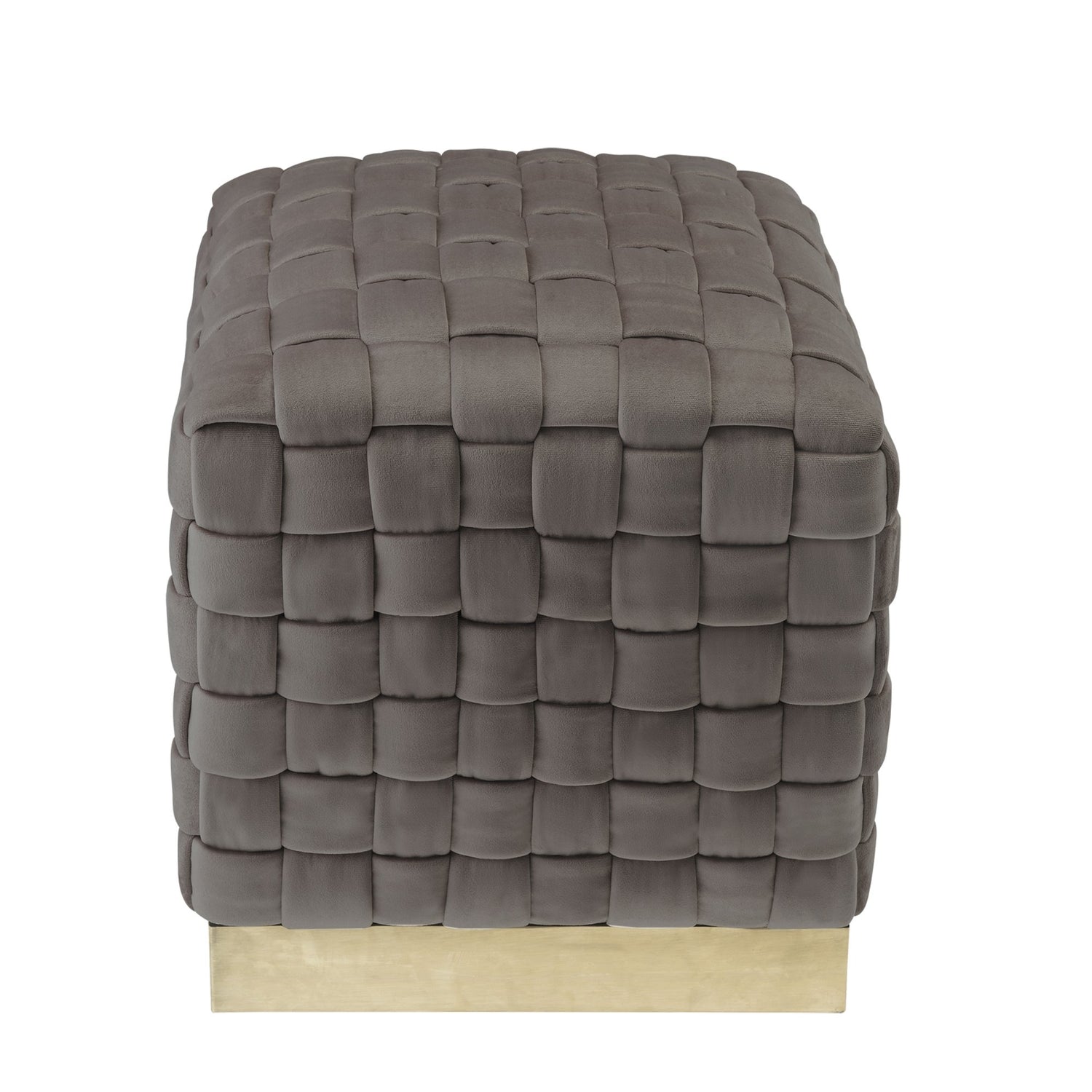 - MODERN DESIGN - Modern and chic velvet upholstery with rich intricate woven pattern and stainless steel matte base adds a touch of freshness to your home decor. Use this design to kick your feet up while watching the game, or cluster four together for a convertible coffee table. Sold as 1 piece