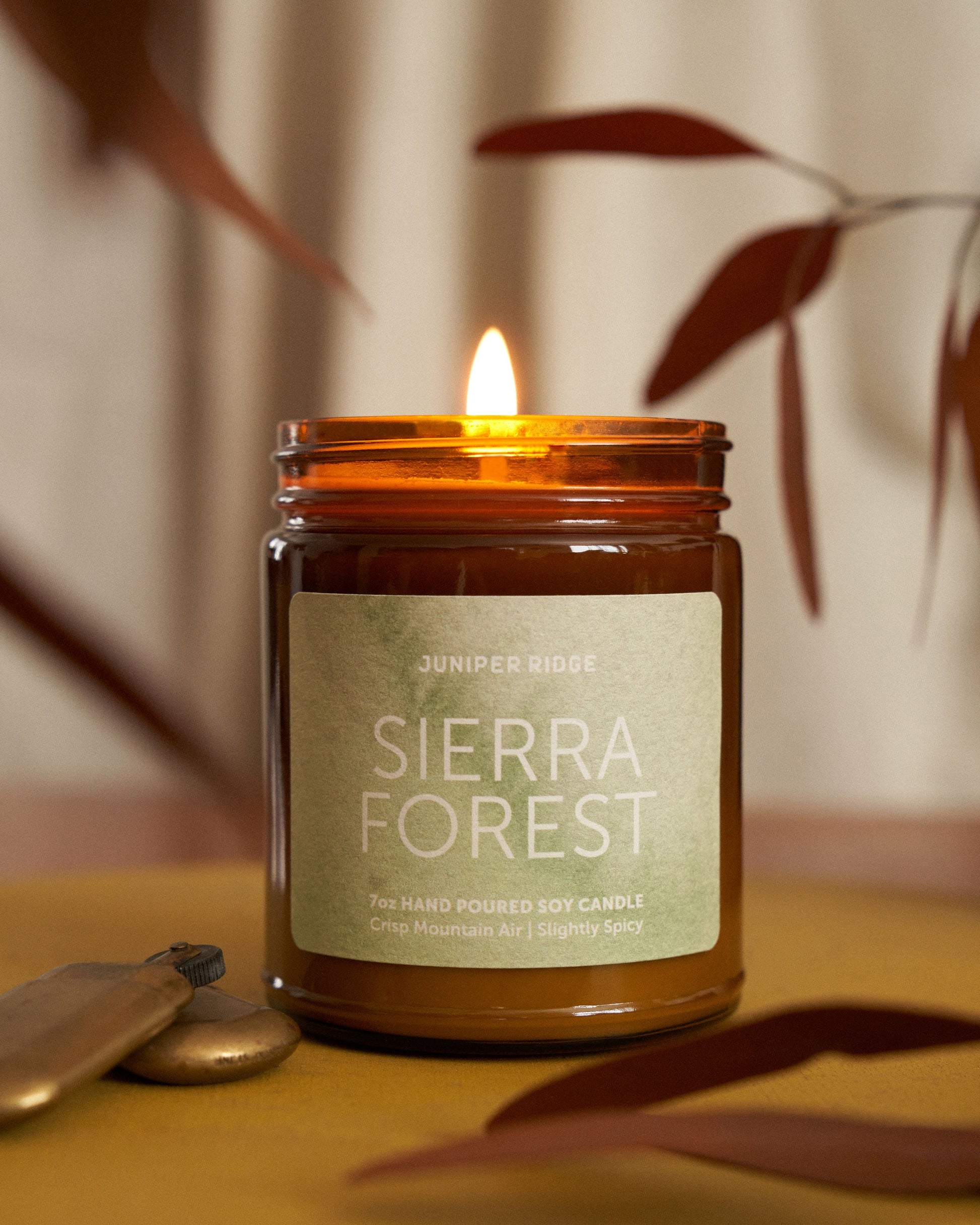 Our Sierra Forest Essential Oil Candle illuminates your space with scents from the Yosemite Valley floor to the shores of Lake Tahoe. Be transported to the tree lined vistas of California’s iconic Sierra Nevada Mountains, where pine, fir, and cedar trees grow tall across the steep range.