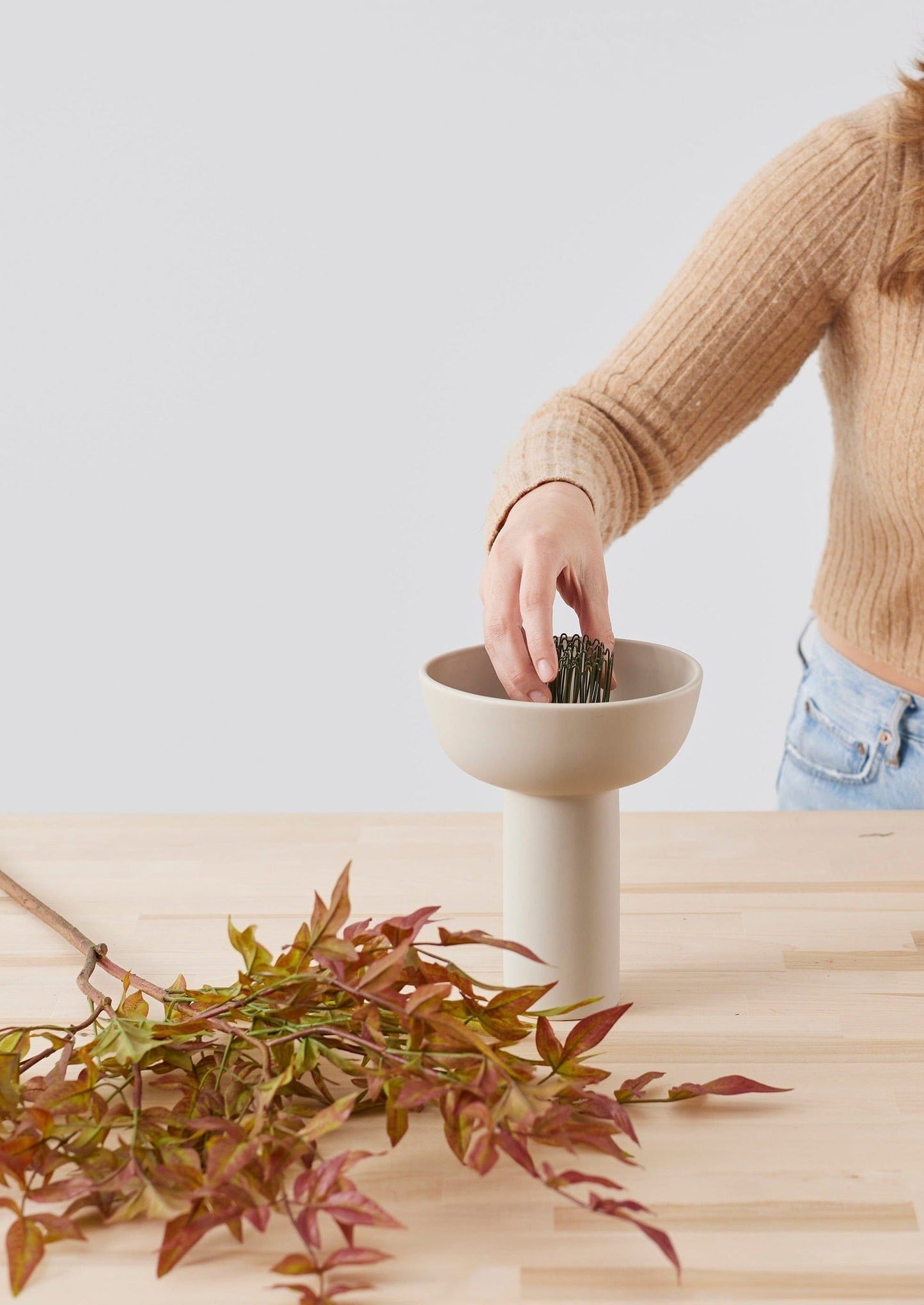 This heirloom, hand-crafted flower hairpin allows you to create no-fuss and no-foam flower arrangements easily. Each flower hairpin has a hand-poured base combined with hand-placed brass hair pins that easily bend and allow for arranging from any angle. This lifetime floral tool can be passed down and reused for generations of flower lovers.