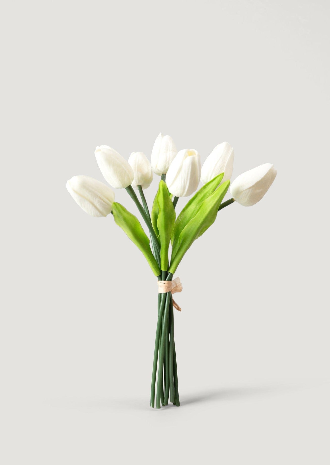 Small White Real Touch Tulip Flower Bundle of 8 - 10"