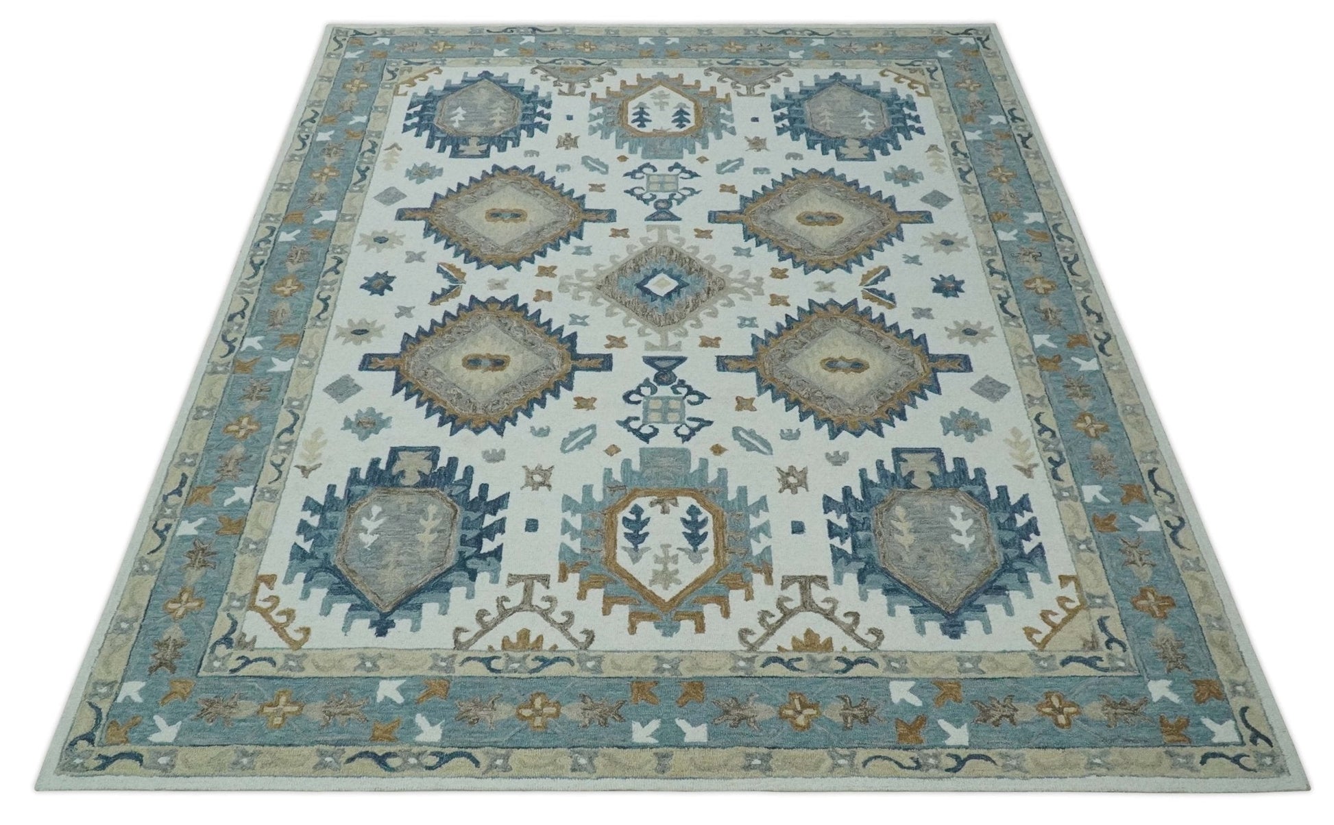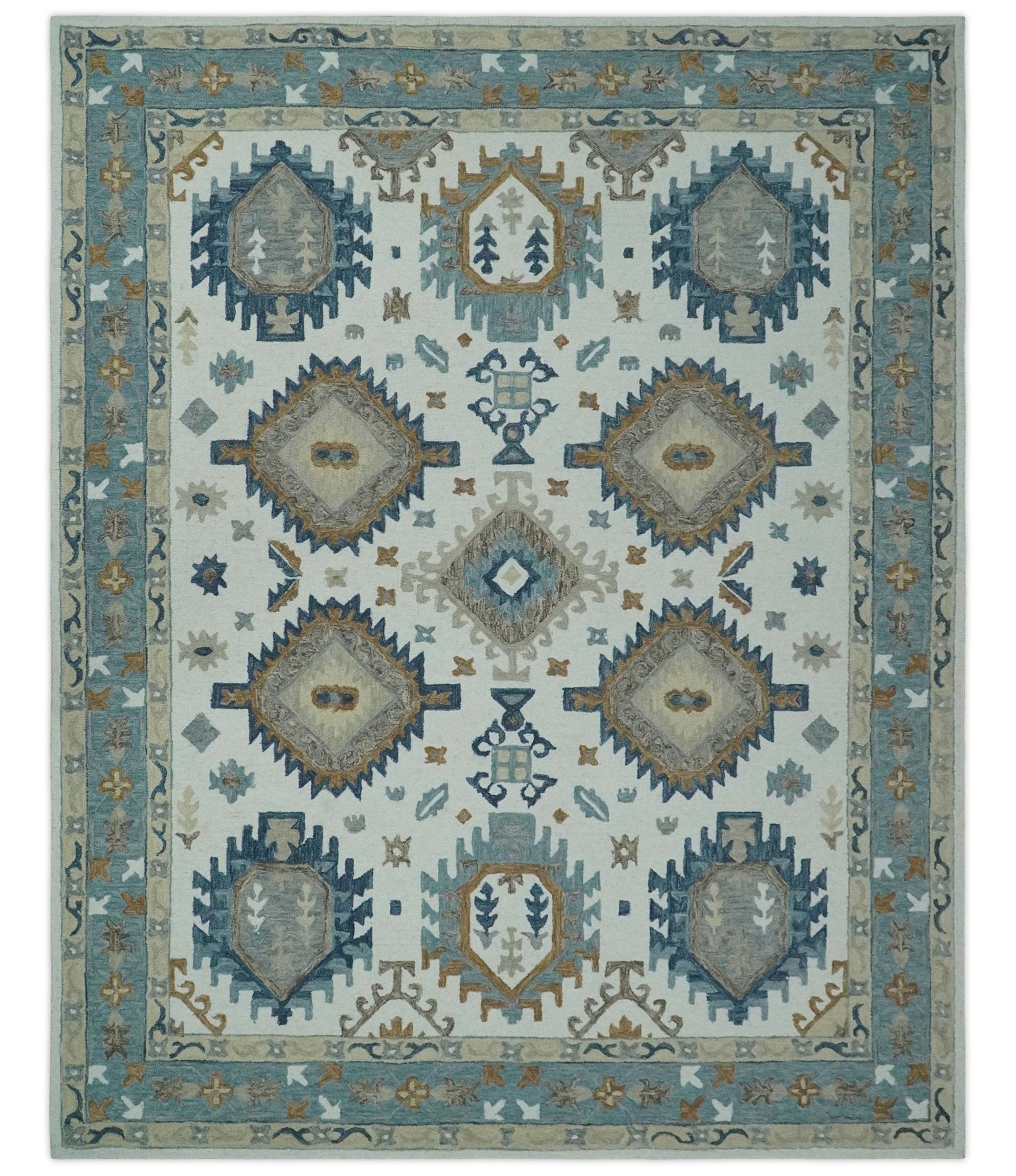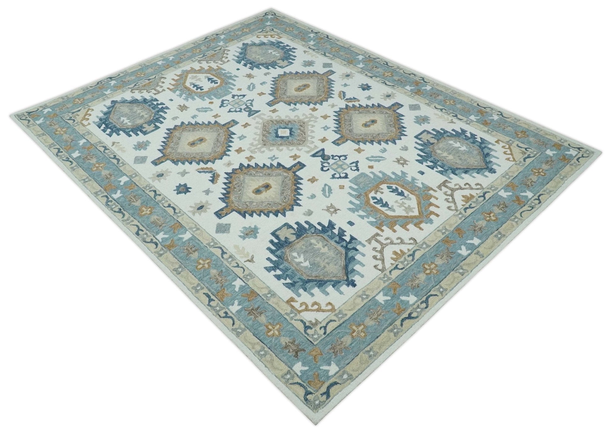 Traditional Large Design Ivory, Blue and Beige Hand Tufted Custom Made wool area Rug