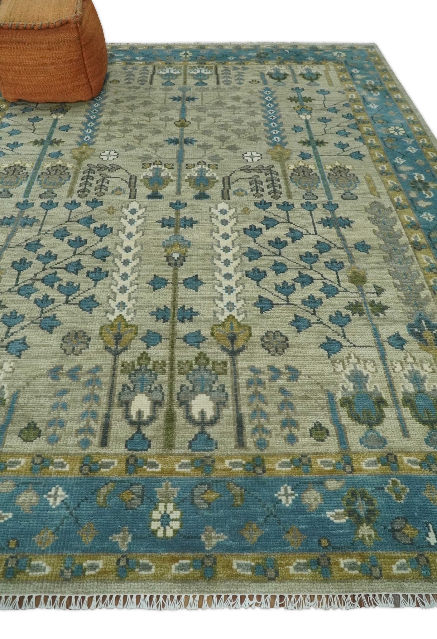 Tree of life Hand Knotted Traditional Beige and Blue Vintage Style Custom Made Wool Area Rug