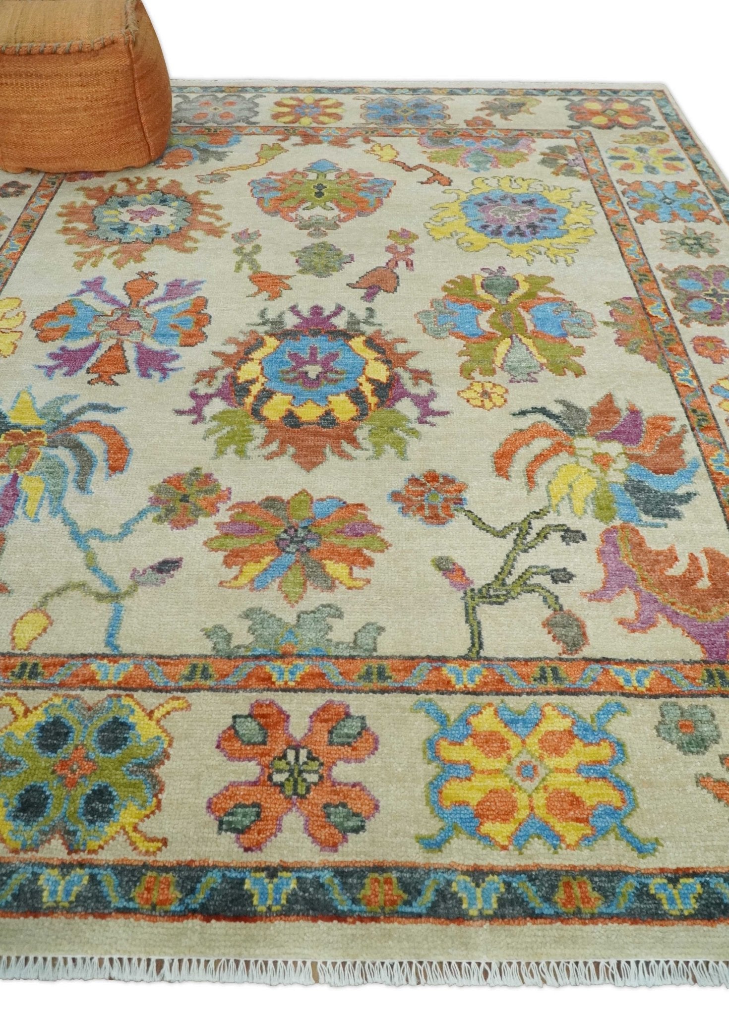 Vibrant Colorful Beige and Rust Traditional Oushak Custom Made wool Area Rug