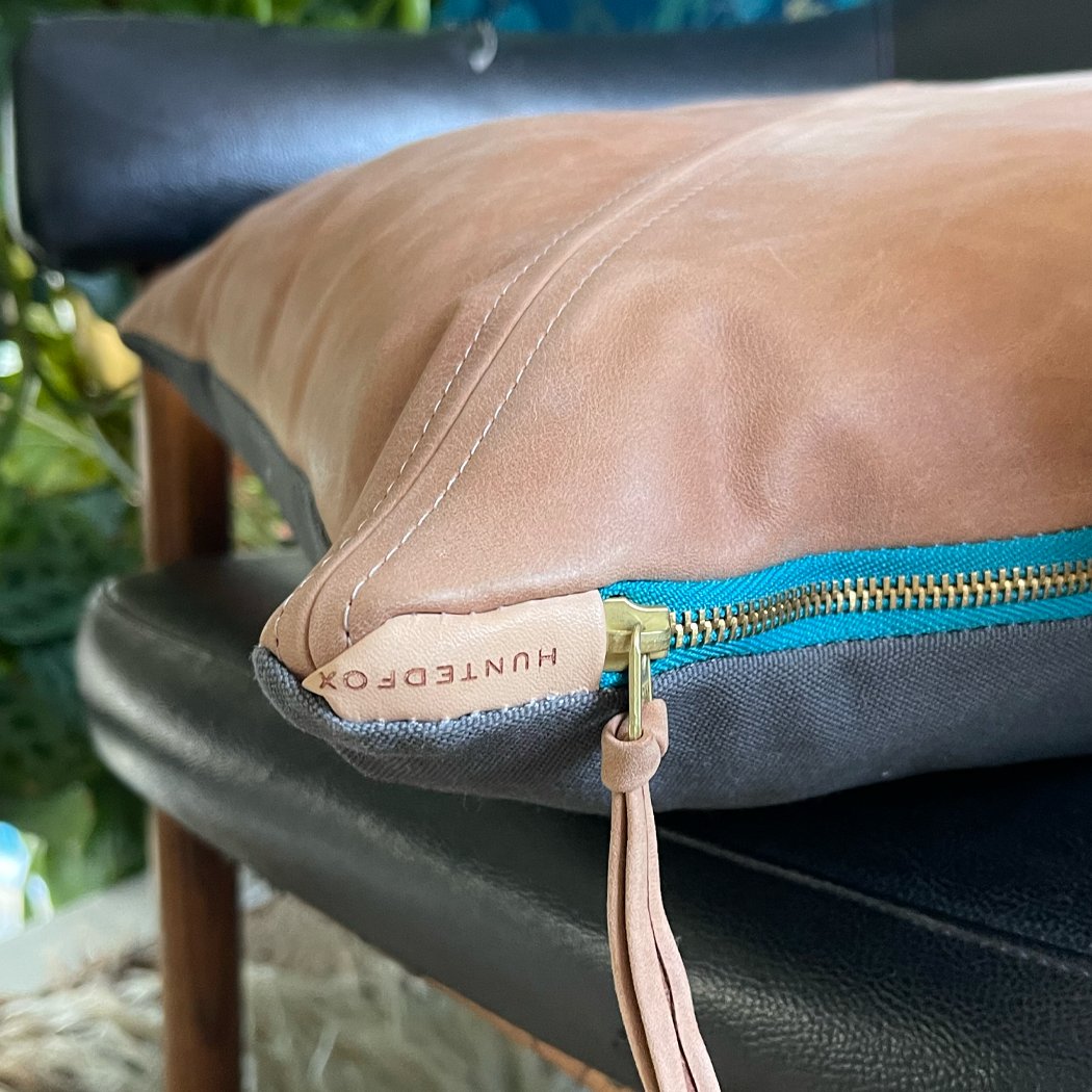 Warm Tan Leather Pillow - Genuine Tan Leather Accent