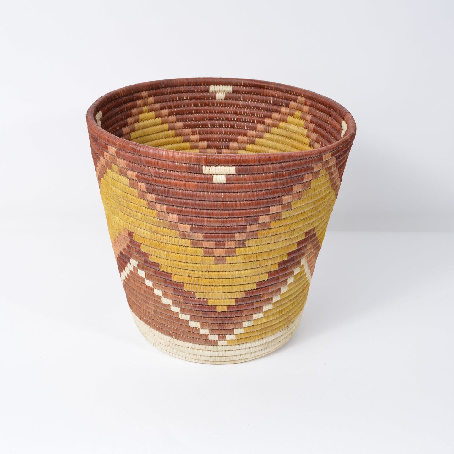 Proudly handmade in Uganda, this basket measures approximately 12" x 11", making it a perfect fit for various uses around your home. Embrace the uniqueness and craftsmanship of this exceptional basket, and add a touch of cultural elegance to your living space.
