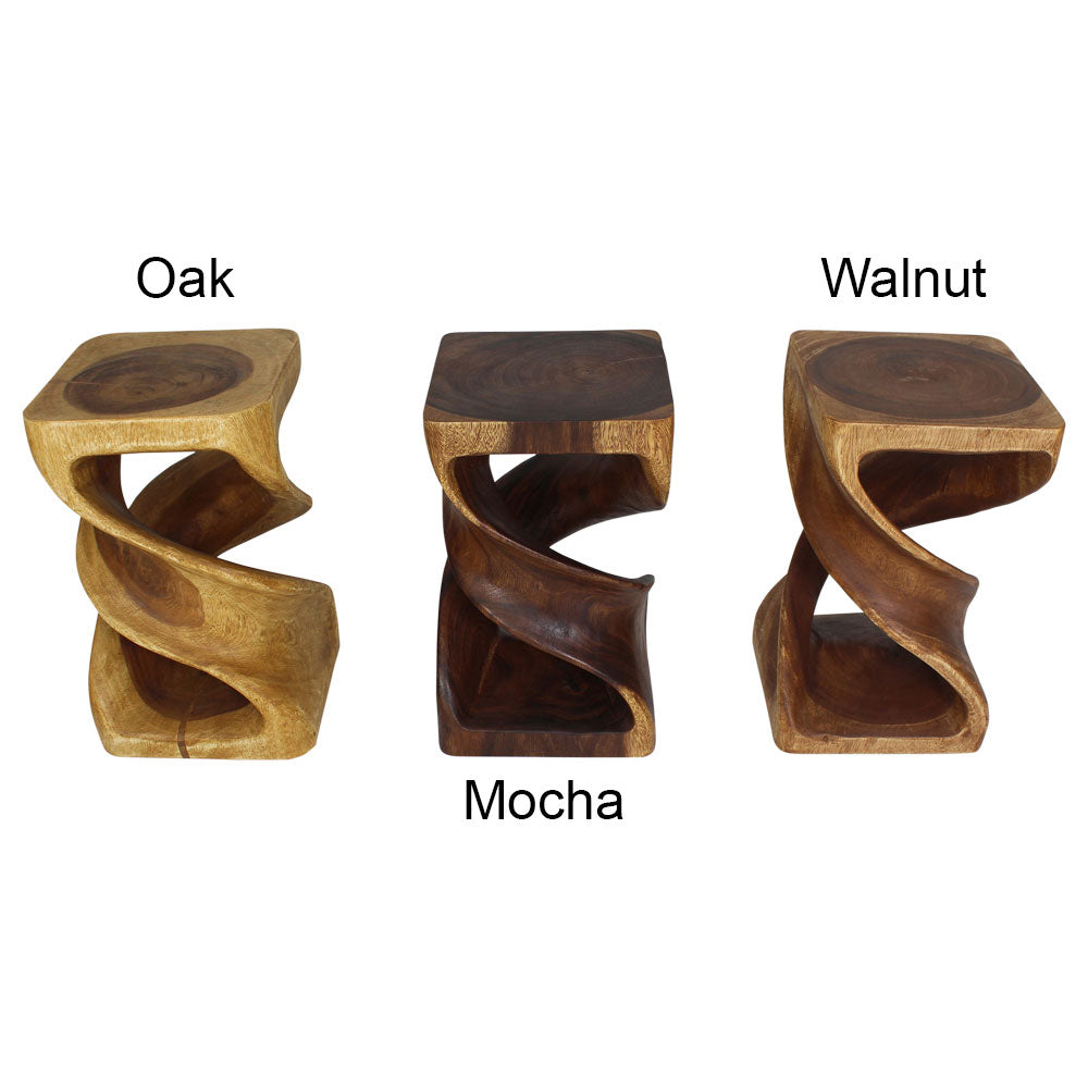 Wood Double Twist Stool Table 12 in SQ x 20 in H Mocha Oil