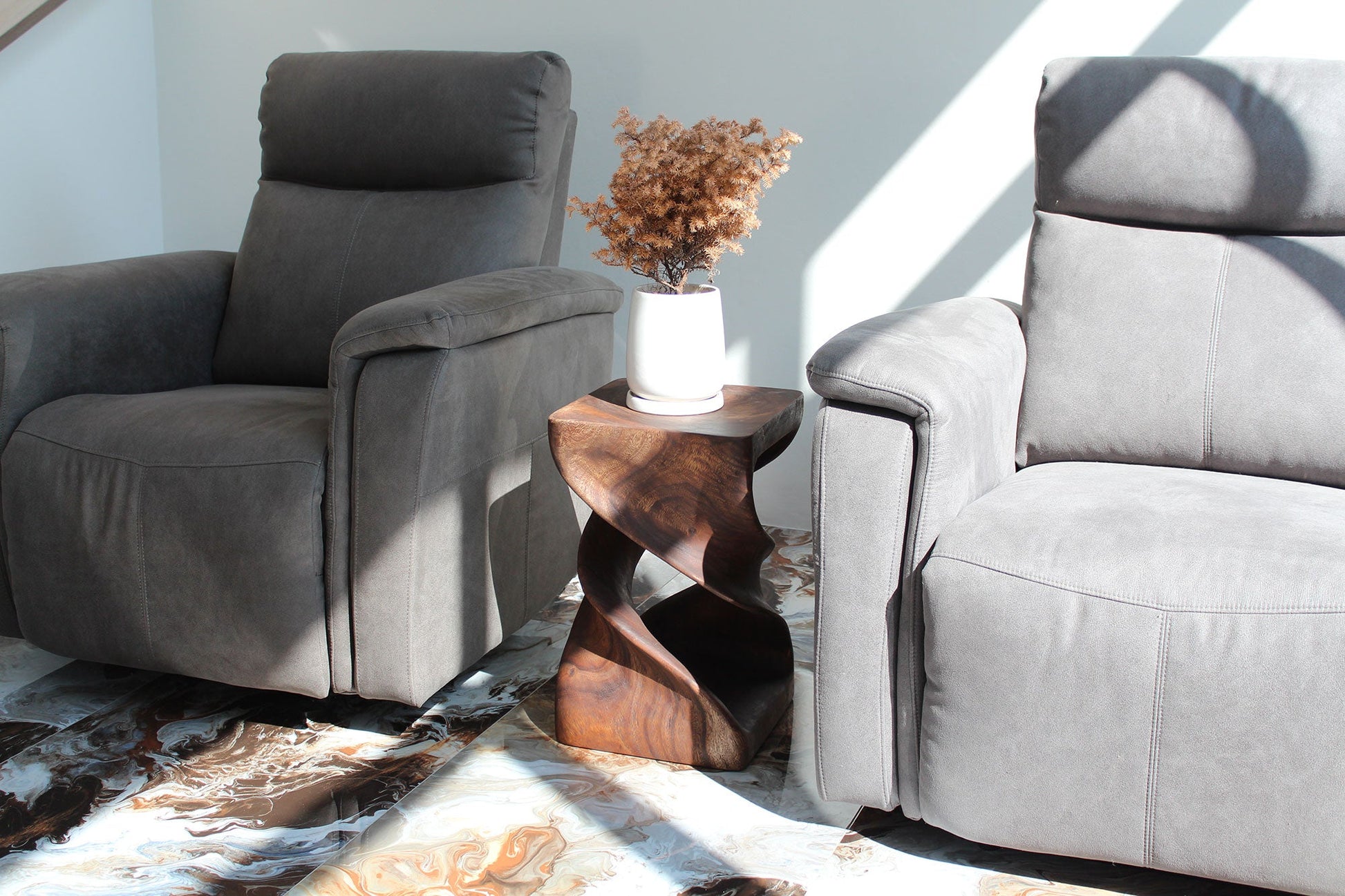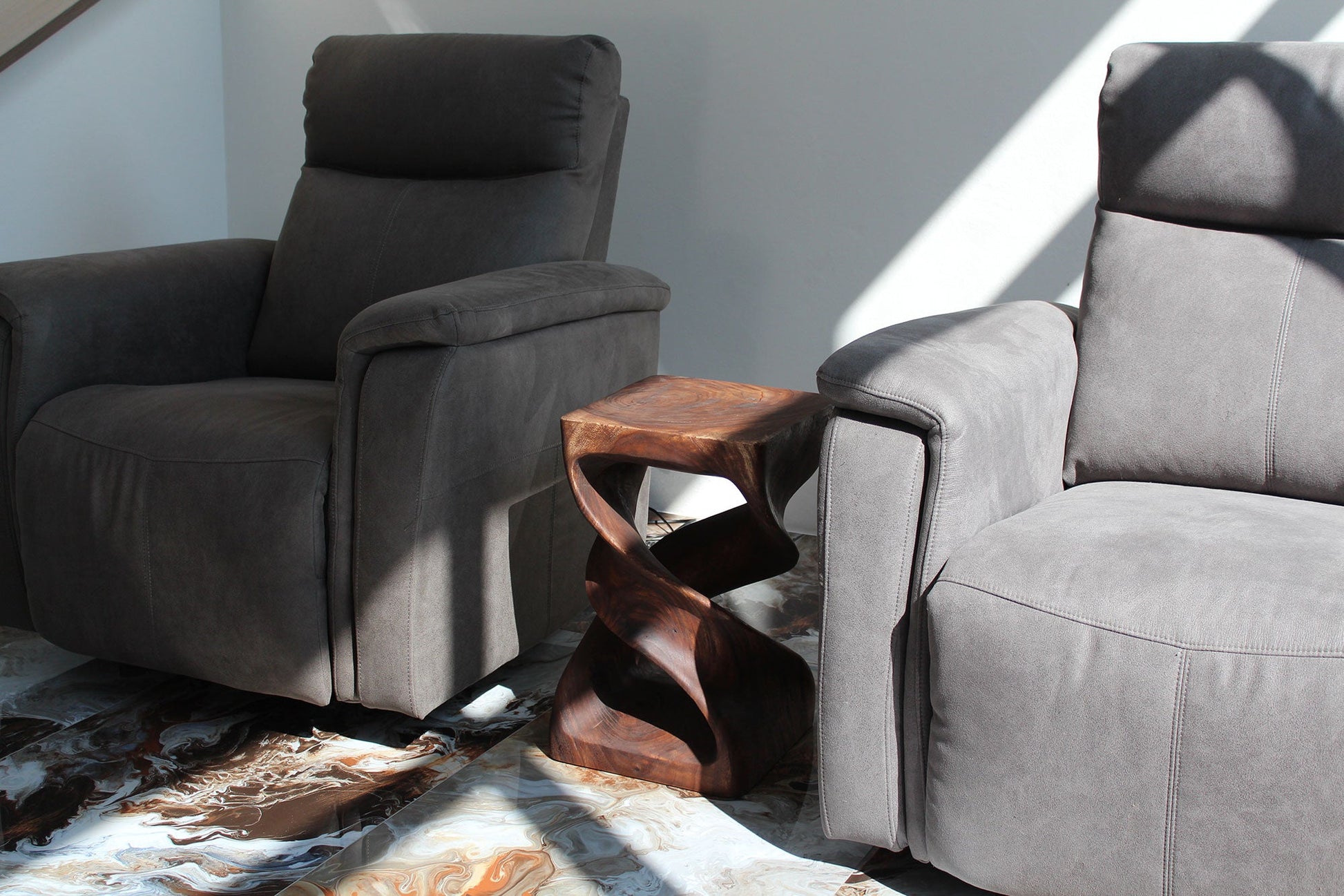 The Double Twist stool is a visual delight in any setting. Its graceful one-quarter turns will add a sense of serenity and beauty to your home. This one-of-a-kind twist stool piece can be appreciated from any angle. Use it as an end table, display stand or stool for last-minute extra seating. Two together can serve as a striking coffee table.